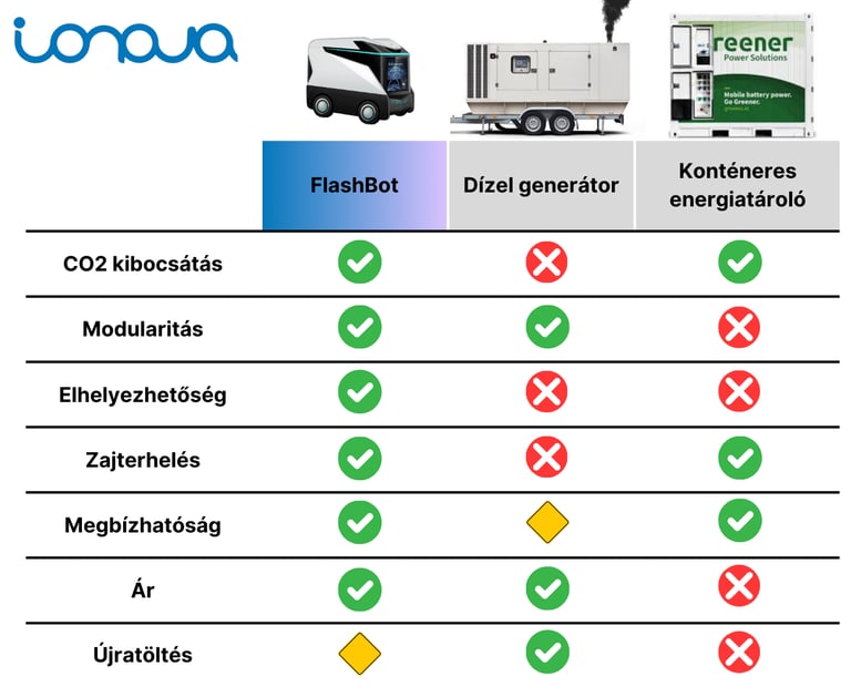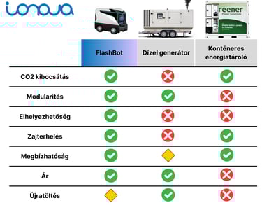 A FlashBot számos előnyt kínál a dízelgenerátorokkal és a konténeres akkumulátoros energiatárolókkal szemben.